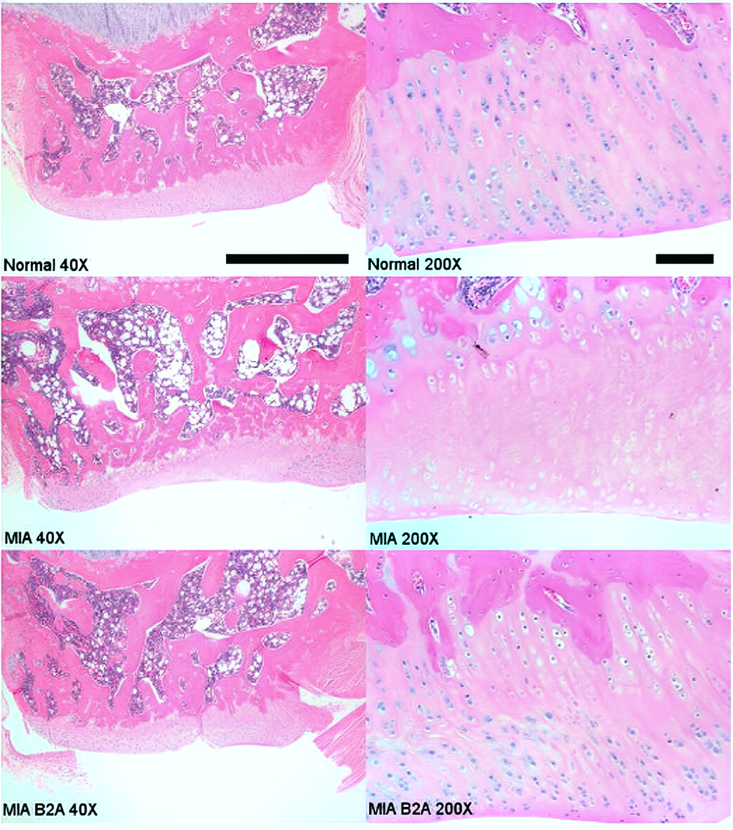 Figure 4 Effect of B2A on MIA-induced osteoarthritis in the knee joint of rats.