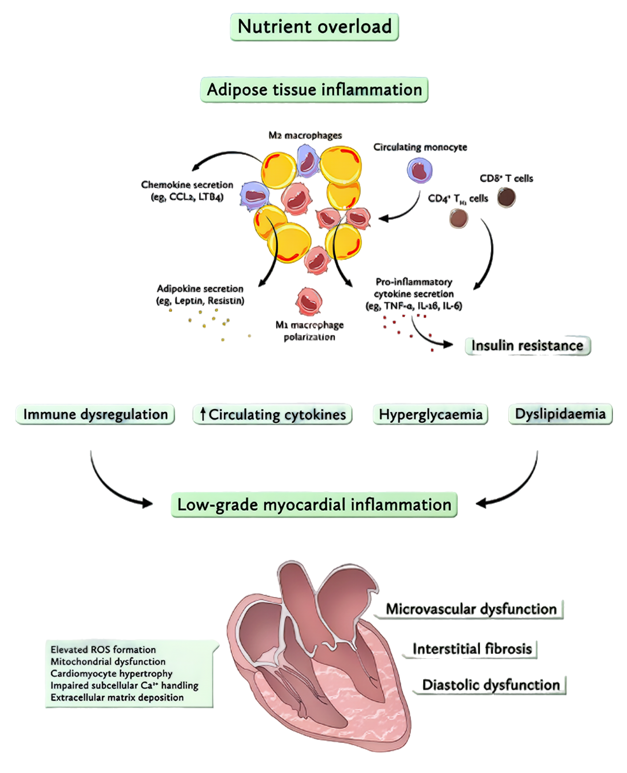 Figure 1. Overnutrition drives metabolic inflammation and promotes a low-grade inflammatory state in the heart.